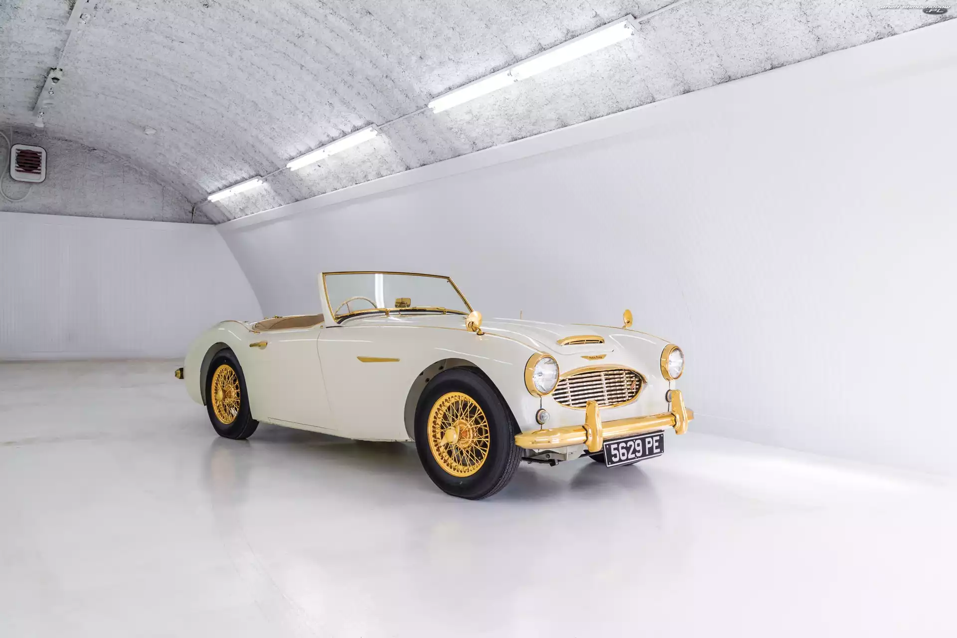 Samochód: Garaż, 1958, Biało-złoty, Zabytkowy, Austin Healey