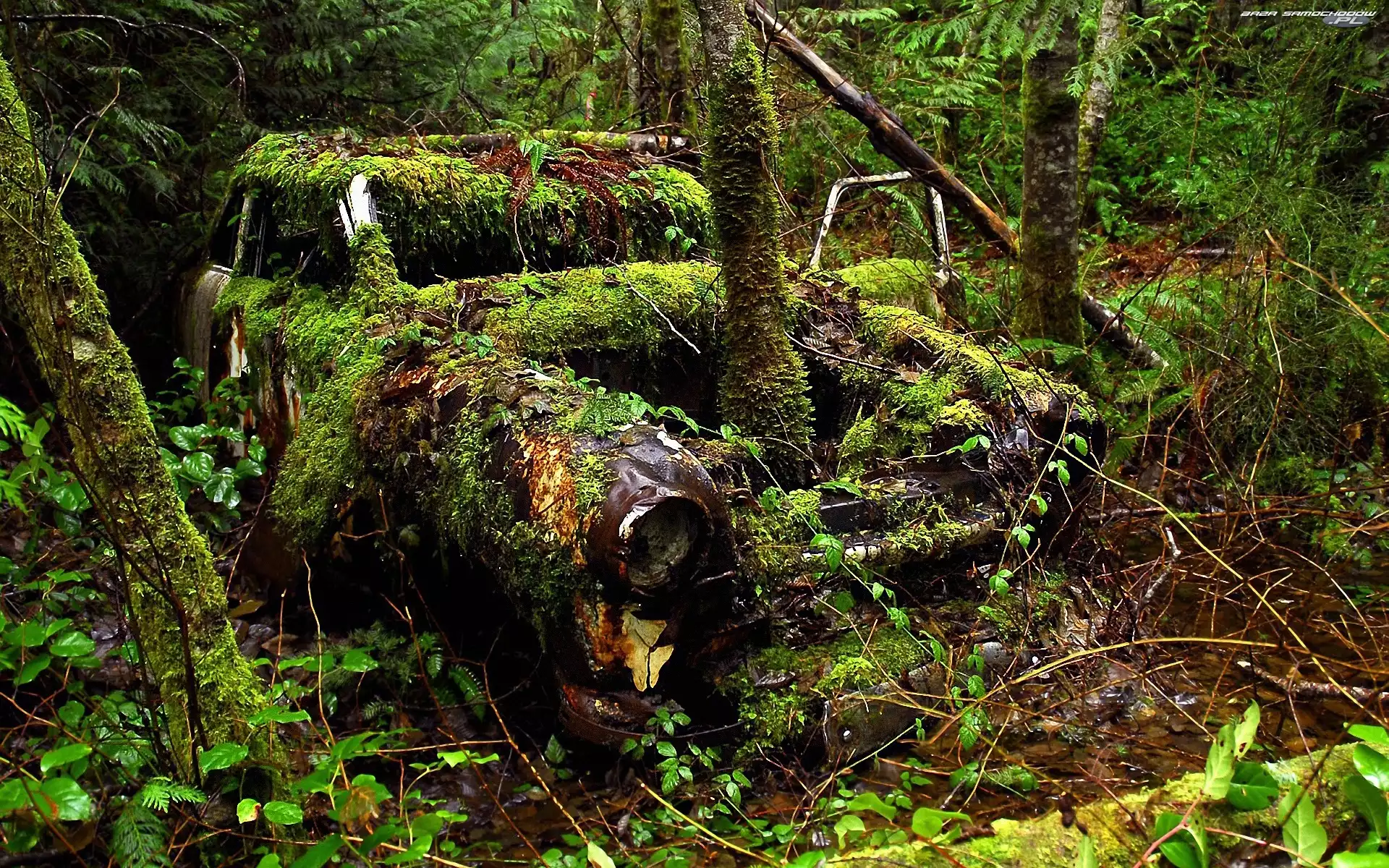 Samochód, Las, Mech, Drzewa, Zabytkowy, Rośliny- Zdjęcia samochodów